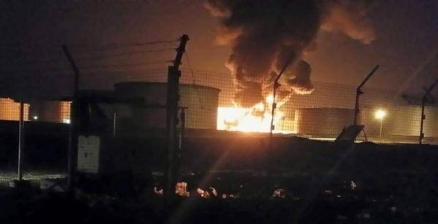 كما شنت مقاتلات العدوان غارات على مصافي عدن الواقعة بمديرية البريقة، متسببة باشتعال النيران فيها بكثافة، حيث تمدد الحريق إلى عدد من منازل المواطنين في الأحياء السكنية المجاورة، وتعد مصافي عدن، ثاني أكبر مشروع اقتصادي نفطي في اليمن.
