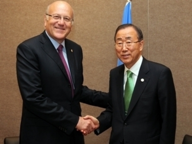 وتعهد بان كي مون خلال لقائه بمقر الأمانة العامة للمنظمة الدولية مع نجيب ميقاتي رئيس حكومة تصريف الأعمال اللبنانية ، بمتابعة ما تم التوصل إليه من نتائج خلال اجتماع (المجموعة الدولية لدعم لبنان ) الذي عقد الأسبوع الماضي على هامش الاجتماعات السنوية للجمعية العامة للأمم المتحدة والعمل على تنفيذها.