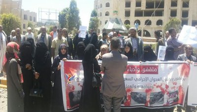 الجبهة الثقافية لمواجهة العدوان تنظم وقفة احتجاجية للتنديد باستهداف طيران العدو السعودي لمنطقة فج عطان
