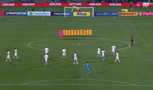 واصطف لاعبو منتخب أستراليا في دائرة منتصف الملعب قبل انطلاق المباراة التي أقيمت في أديليد، أمس الخميس، لكن لاعبي السعودية انتشروا في الملعب وواصلوا عمليات الاحماء.