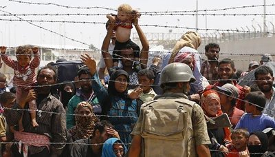 أغلقت السلطات التركية حدودها مع سوريا بسبب ما قالت انه تدفق كبير لآلاف اللاجئين من حلب إلى الحدود .