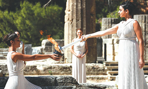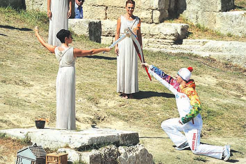 قبل نحو 130 يوما على بدء دورة الألعاب الأولمبية الشتوية الثانية والعشرين في سوتشي بروسيا، جرى هنا في أطلال قرية أولمبيا القديمة مقر أول ألعاب أولمبية في العالم، تنظيم مراسم إشعال شعلة الأولمبياد الشتوية وتسلميها إلى روسيا، في حضور العديد من كبار المسؤولين للاحتفال بهذا الحدث الرياضي الكبير، حيث تقدم الحضور الرئيس اليوناني كارلوس بابولياس والرئيس الجديد للجنة الأولمبية الدولية الألماني توماس باخ، ورئيس اللجنة المنظمة لأولمبياد سوتشي ديمتري تشرنيشنكو ومحافظ أولمبيا ثيميوس كوتزياس.