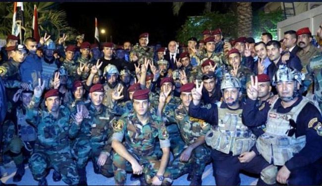واضاف: “انكم شاركتم بتحرير تكريت وسامراء وتقاتلون حاليا في الانبار وقدمتم الشهداء والجرحى من اجل الوطن والمواطن وحماية بغداد امر مهم تقومون به”، مشيراً إلى ان “العراق سينتصر لان شعبه يمتلك الارادة وفيه ابطال يقاتلون الارهاب ويحققون الانتصارات عليه”.