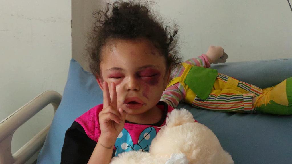 بالصور: بثينة التي حاولت فتح عينها الجريحة فتحت عيون العالم على جرائم السعودية في اليمن