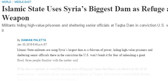 أوردت صحيفة أميركية نقلا عن مصادر أن مسلحي تنظيم الدولة الإسلامية يسستخدمون سد طبقة أضخم سدود المياه في سوريا مخبأ لأهم سجنائهم وملاذا لكبار قادتهم وترسانة أسلحتهم اعتقادا منهم بأن الولايات المتحدة لن تجرؤ على قصفه مخافة إحداث طوفان هائل.