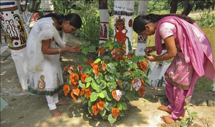 شرع عشرات الفنانين في ولاية بيهار الهندية في رسم روايات ملوّنة مستقاة من الاساطير الهندية على جذوع الاشجار واوراقها على امل انقاذ الرقعة الخضراء المهددة بالاندثار في المنطقة.