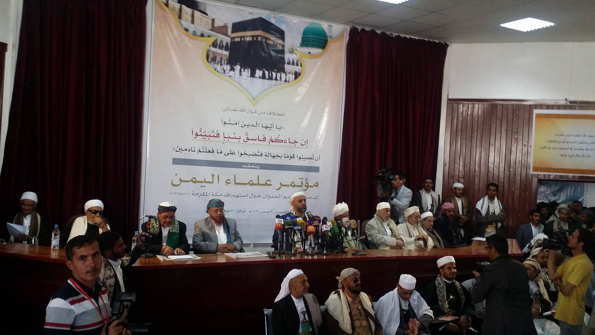 أكد علماء اليمن في ختام مؤتمر موسع عقد في العاصمة صنعاء وضم علماء من مختلف التيارات  أن النظام السعودي يستغل الحرمين الشريفين لخدمة الأغراض الاستعمارية  ، وادعاؤه باستهداف الجيش واللجان الشعبية للاراض المقدسة كذبة لن تنطلي على أحد و لن يغطي جرائم العدوان السعودي الأمريكي في اليمن.