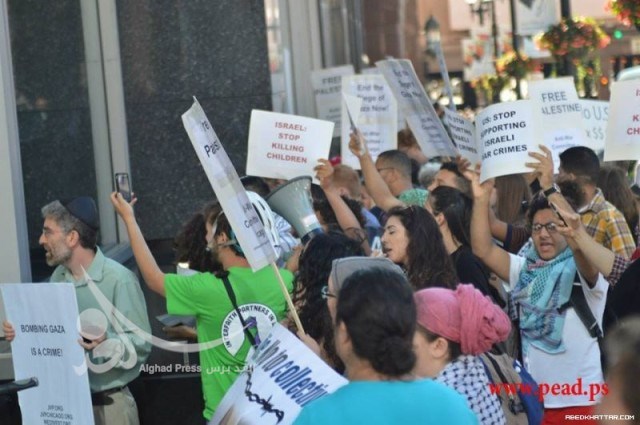 وأضاف بلوط وهو من قادة التحالف من اجل العدالة في فلسطين ان الحرب المفروضه على شعبنا في غزه تتصاعد وتأخذ ابعادا محليه واقليميه ودولية فالمجزره الاخيره التي اقترفها المحتل الصهيوني بحق اطفال عزل يلعبون على الشاطيء في غزه كشفت الوجه الحقيقي للصهاينه وكذبهم من ان المقاومه تستخدم الاطفال كدروع بشريه ان ما يحصل هو استئصال ممنهج لهذا الشعب الذي يريد ان يعيش بكرامة وحريه ان ما اقترفته اسرائيل بالامس بحق الاطفال من عائلة بكر نسفت كل جهود السلم في المنطقة ووضعت الوسيط المصري في حالة لا يستطيع الدفاع فيها عن وثيقة التهدئه المقترحة وعالميا مازالت المظاهرات المؤيده للشعب الفلسطيني تتزايد في اوروبا وامريكا وبقية دول العالم حيث للمرة الرابعة تقوم الجاليه العربيه والفلسطينه في مدينة شيكاغو في مظاهرات عارمة تغلق الشوارع وتندد بالمحتل الاسرائيلي.