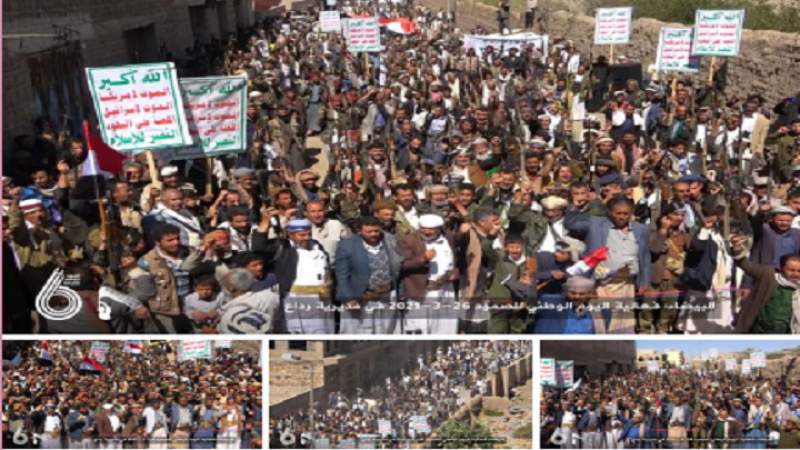 شهدت مدينة البيضاء اليوم مسيرة حاشدة، بمناسبة اليوم الوطني للصمود وتدشين العام السابع من الصمود في وجه العدوان الأمريكي السعودي.