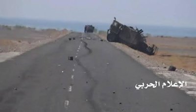 ولفت المصدر الى ان الجيش واللجان الشعبية نفذوا كميناً محكماً لقوات الغزو والمرتزقة حيث تم استدراجهم الى معسكر العمري وتطويقهم وتدمير مدرعة وطقم فيما لا تزال مدرعتين وجنود عسكريين محاصرين في أحدى التباب التي تقع غرب معسكر العمري.