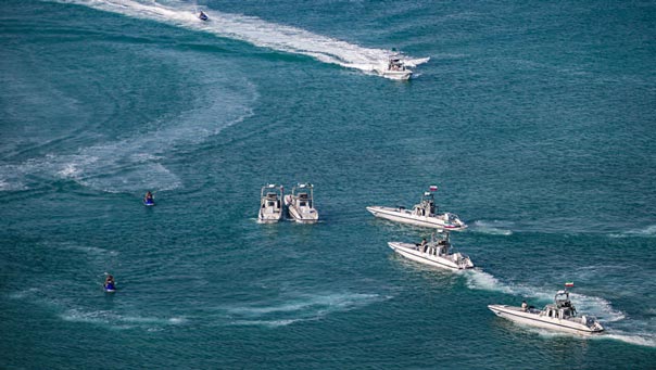 قوارب البحرية الإيرانية في المرحلة الثانية من المناورات أمس