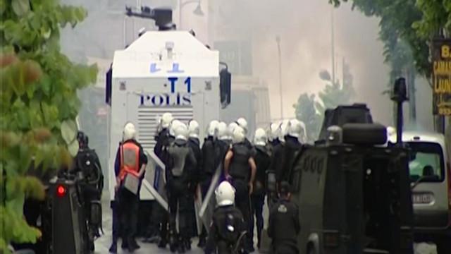 استخدمت الشرطة التركية مساء اليوم الغاز المسيل للدموع وخراطيم المياه لتفريق مئات المحتجين في إسطنبول الذين تجمعوا لإحياء الذكرى الأولى لأحداث (جيزي بارك) المناهضة للحكومة العام الماضي.