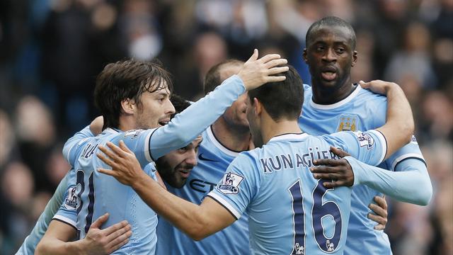 على ملعب “الاتحاد” وامام 47023 متفرجاً، اضطر لاعبو المدرب التشيلي مانويل بيليغريني للانتظار الى الدقيقة 64 لافتتاح التسجيل، عندما مرر الاسباني دافيد سيلفا الكرة الى الارجنتيني بابلو زاباليتا فلعبها عرضية الى البوسني ادين دزيكو ليسجل بيمناه من مسافة قريبة هدفه الخامس عشر هذا الموسم.