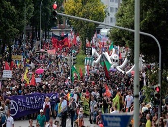 آلاف الاشخاص يحتجون أمام قاعدة جوية أميركية في ألمانيا