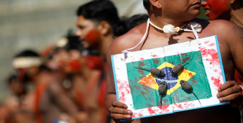 خرج آلاف من السكان الأصليين في البرازيل يمثلون أكثر من 300 قبيلة، في مسيرة إلى مكاتب الحكومة في العاصمة برازيليا احتجاجا على سياسات الرئيس اليميني جايير بولسونارو المهددة لأراضيهم.