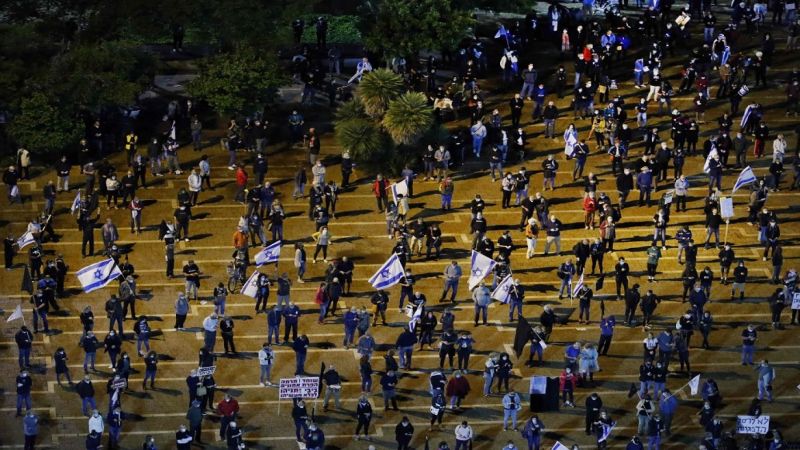 آلاف المتظاهرين في “تل أبيب” ضد اتفاق نتنياهو – غانتس