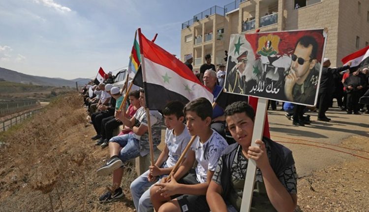 ورفع أبناء الجولان السوري المحتل العلم العربي السوري واللافتات الرافضة لسياسات الاحتلال التهويدية وذلك على مرأى من جنود الاحتلال.