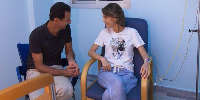 وكانت وكالة (سانا) للأنباء، قد نشرت في وقت سابق اليوم، تغريدة من حساب رئاسة الجمهورية السورية على (تويتر) جاء فيها “بقوة وثقة وإيمان.. السيدة أسماء الأسد تبدأ المرحلة الأولية لعلاج ورم خبيث بالثدي اكتشف مبكراً”.