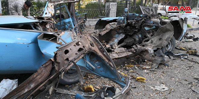 أضرار مادية نتيجة انفجار عبوة ناسفة زرعها إرهابيون بسيارة في حي العدوي بدمشق