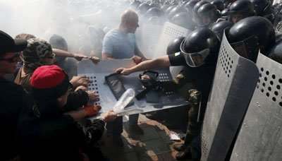 إرتفاع عدد الضحايا من رجال الأمن في إشتباكات أوكرانيا إلى ثلاثة قتلى و130 جريحاً