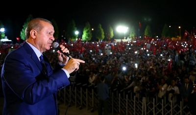 وأشار الرئيس التركي إلى أنه “من غير المعروف متى ومن أين سيأتي الخطر أو التهديد أو الخيانة”، على حد تعبيره. وأضاف “لقد استشهد أشخاص في شرناق وكان هناك انفجارات في ماردين وديار بكر، لافتاً إلى أنه “عندما يذهب فتح الله غولن يتولى حزب العمال الكردستاني الغدر وعندما يذهب حزب العمال الكردستاني يتولى ذلك داعش”.
