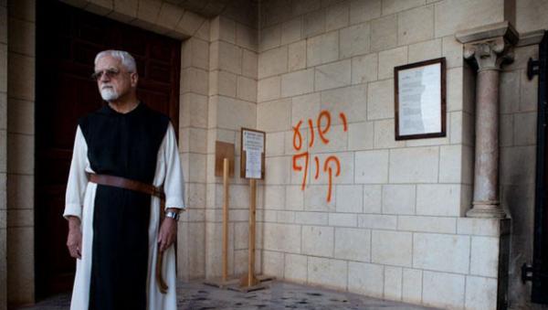 وتابع: “عندما يكتبون كلمات نابية على أي مكان مقدس عن المسيح أو محمد يقولون بالنسبة لنا ارحلوا وأن هذه الأرض لنا، ولكن، علينا نحن كفلسطينيين مسلمين ومسيحيين أن نفكر بأنفسنا وأن نكون حذرين من هذه الإساءات”.