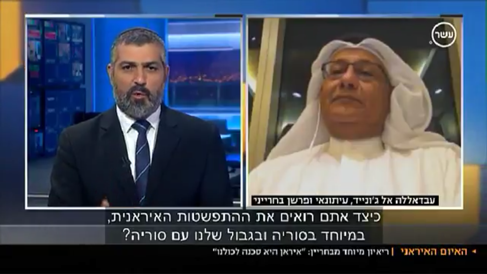 ظهر الإعلامي البحريني المقرب من السلطة عبد الله الجنيد في مقابلة تلفزيونية مع القناة “العاشرة” الإسرائيلية في أول ظهور علني لشخصية بحرينية على شاشات الكيان.
