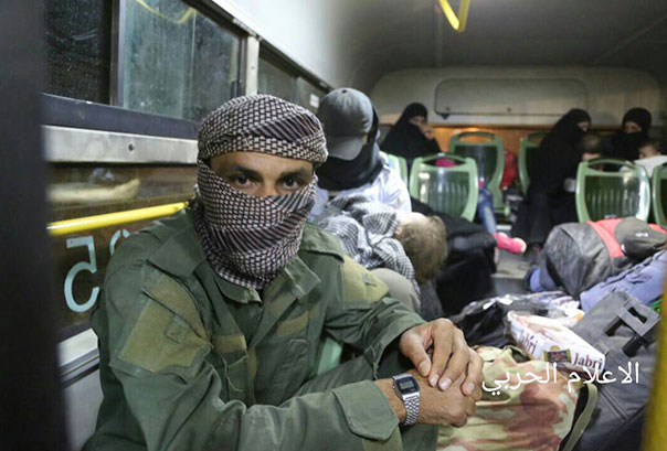 في سياق متصل، نشر الاعلام الحربي في المقاومة الاسلامية صوراً تظهر مسلحي جبهة “النصرة” من داخل الحافلات التي أقلّتهم مهزومين من جرود عرسال اللبنانية الى إدلب.