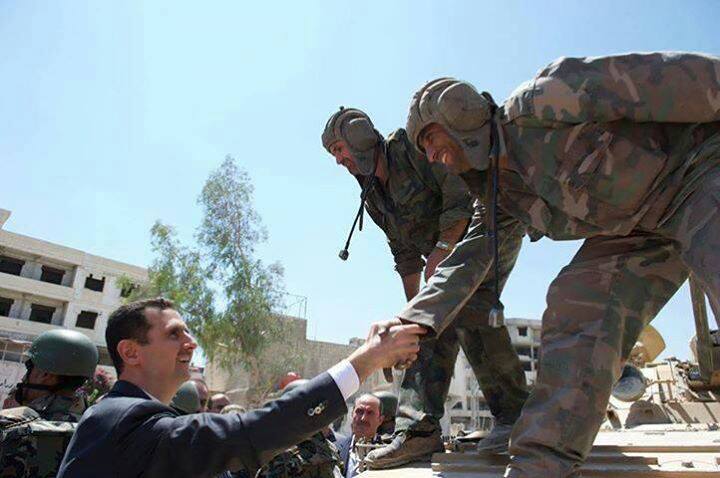 وقال بشار الأسد: هنا لا بد أن أشير إلى أنه وبعد أن أسقط الشعب المصرى وجيشه الباسل حكم «مرسى» الإخوانى بذلنا جهداً كبيراً مع الأصدقاء فى إيران وحذرناهم بألا يُخدعوا من الأحداث، فما حدث فى مصر ليس انقلاباً وإنما هو ثورة شعبية بمعنى الكلمة، وجاء الجيش لحماية هذه الثورة والانحياز إليها.
