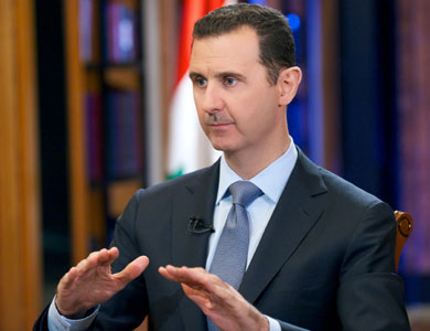 أعلن الرئيس السوري بشار الأسد ان كل شيء مطروح للحوار بين السوريين،بما في ذلك موضوع الرئاسة،وليس هناك خط أحمر باستثناء السلاح والتدخل الخارجي، وقال انه يرفض مصطلح “وقف النار مع الارهابيين”.