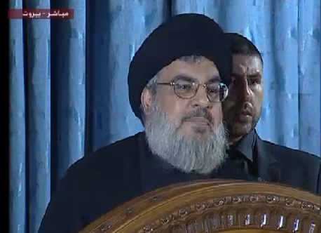 الامين العام لحزب الله السيد حسن نصر الله يحضر شخصيا في المجلس العاشورائي في مجمع سيد الشهداء في الضاحية الجنوبية لبيروت وسط هتاف جمهور المقاومة ’’لبيك يا نصر الله’’