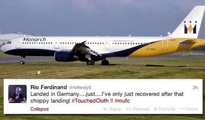 وكتب ريو فرديناند، مدافع يونايتد، في حسابه على موقع تويتر “هبطنا في المانيا. تعافيت لتوي فقط من هذا الهبوط المتقلب!”.