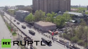 التقطت طائرة من دون طيار الخميس 7 مايو/أيار شريط فيديو للبروفة النهائية للعرض العسكري الذي سيقام في موسكو يوم 9 مايو بمناسبة عيد النصر.