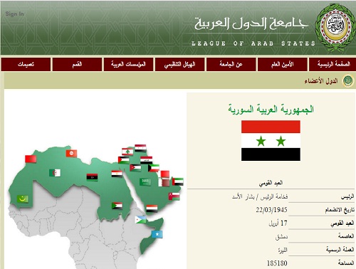 وتناقلت مواقع التواصل الاجتماعي حسب ما نقل موقع syria-victory صوراً من موقع جامعة الدول العربية على الانترنت يظهر علم سوريا بألوانه الثلاثة (الاحمر والابيض والاسود مع نجمتين خضراوتين في الوسط) ووصفاً للرئيس بشار الأسد بصفته ” فخامة رئيس الجمهورية العربية السورية”.