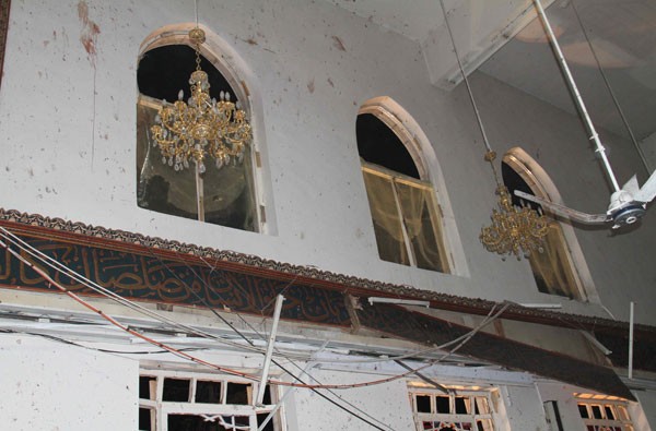 صور نشرتها وكالة الأنباء السورية ـ سانا لمسجد الإيمان الذي كان العلامة الشهيد الدكتور محمد سعيد رمضان البوطي يعطي فيه درسه الديني في منطقة المزرعة في دمشق، حيث قام إرهابي انتحاري بتفجير نفسه، ما أدى إلى استشهاد العلامة البوطي وعشرات المصلّين، إضافة إلى جرح عشرات آخرين