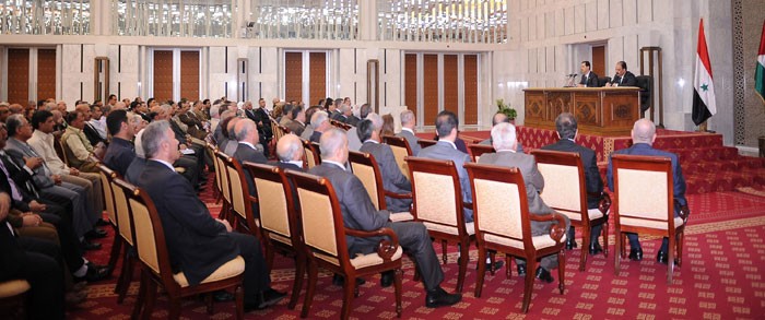 وأكد الرئيس الأسد ضرورة تعزيز العلاقة بين القيادات والقواعد الحزبية ووضع آليات ومعايير واضحة تضمن مساهمة القواعد في اختيار ممثليهم في مجلس الشعب ومجالس الإدارة المحلية.