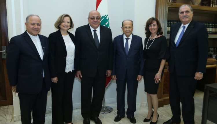 واستقبل الرئيس عون في حضور وزير شؤون رئاسة الجمهورية سليم جريصاتي، رئيس جامعة القديس يوسف الاب البروفسور سليم دكاش والامينة العامة لمؤسسة الجامعة السيدة كارمن واكيم، ورجل الاعمال الاميركي اللبناني الاصل السيد سجعان غفري وقرينته السيدة ندى غفري، واطلع منهم على المبادرة التي اطلقها السيد غفري المقيم في ولاية ميشيغان الاميركية، لانشاء صندوق لتقديم ودعم منح جامعية لطلاب مركز الدروس الجامعية في لبنان الجنوبي- البرامية التابع لجامعة القديس يوسف.