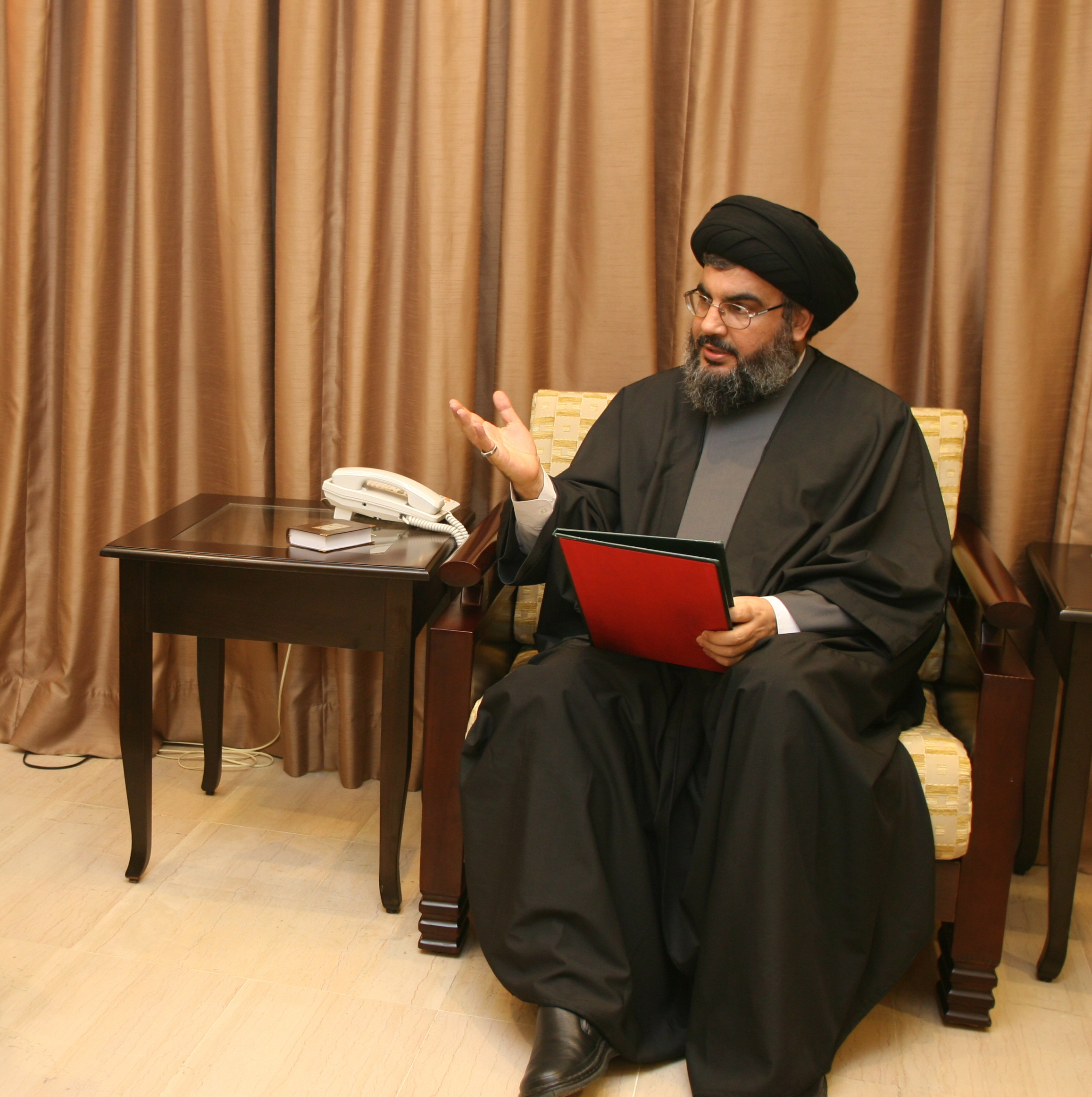 وأكد للأخ أبو الوليد وقوف حزب الله والمقاومة اللبنانية إلى جانب انتفاضة ومقاومة الشعب الفلسطيني قلباً وقالبا وارادة وأملاً ومصيراً. وكذلك تأييدها حول رؤيتها للموقف وشروطها المحقة لإنهاء المعركة القائمة.