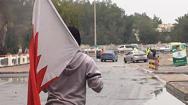 ورفع المتظاهرون شعارات مناوئة للنظام ولملك البحرين حمد بن