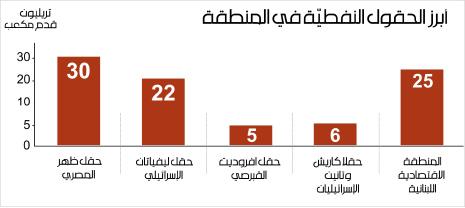 أمّا في لبنان، فتشير الدراسات والمسوح التي أجريت إلى وجود نحو 25 تريليون قدم مكعّب من الغاز الطبيعي في المنطقة الاقتصاديّة الخالصة الخاصّة به. وهي ثروة واعدة، خصوصاً أن 0.2 تريليون قدم مربّع فقط كفيلة بتوفير الطاقة 24/24 لمدة عشرين سنة، بحسب هيئة إدارة قطاع النفط في لبنان. إلا أن الوصول إلى استثمار هذه الثروة لا يزال معلقاً على اتفاقات ومحاصصات لم تتم.