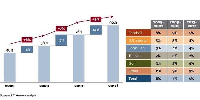 إيرادات الأسواق الرياضية ( مليار دولار أمريكي )