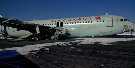 أعلنت السلطات الكندية ان طائرة الايرباص التي خرجت الاحد عن المدرج لدى هبوطها في جنوب شرق البلاد اثناء عاصفة ثلجية مما اسفر عن اصابة 23 شخصا بجروح طفيفة، اصطدمت اثناء الهبوط بعمود إرسال قريب من المدرج مما ادى لانتزاع منظومة عجلات الهبوط وانزلاقها على بدنها وتحطمها جزئيا.
