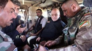 وخلال ظهوره باللباس العسكري، في المحاور الأمامية لمدينة الفلوجة لبحث العمليات الجارية فيها وشد أزر المقاتلين ضد تنظيم “داعش”، أكد العبادي أن “من حق العراقيين أن يفتخروا ببطولات أبنائهم في جبهات القتال”، مضيفًا في تصريحاته من خطوط المواجهة الأمامية في قاطع النعيمية إن “الشعب العراقي يترقب ما يحققه الجنود في أرض المعركة من هزائم بعصابات “داعش”.