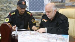 وفي لقطاتٍ بثها الإعلام العراقي، قال العبادي للقادة العسكريين “كان من الممكن أن تحسم المعركة بسرعة لو لم يكن حماية المدنيين ضمن خطتنا الأساسية، الحمد لله القطعات الآن على مشارف الفلوجة والنصر الآن باليد”، وشدد على أن “عملية تحرير الفلوجة من تنظيمِ “داعش” ستُنجز قريبًا، وأنَ الهدفَ تحريرُ الانسانِ والأرضِ بأقلِ الخسائر”.