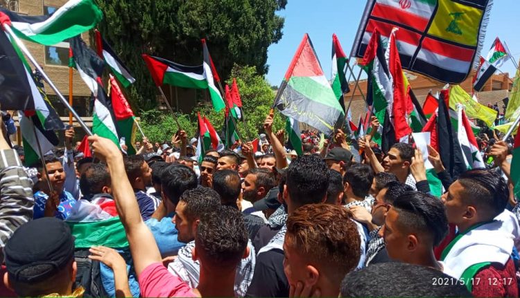 تضامنا مع الشعب الفلسطيني في الاراضي المحتلة، ورفضا لكل الاجرام والانتهاكات الصهيونية، نفذ الفلسطينيون في سوريا وقفة احتجاجية و مظاهرة غضب امام مقر الامم المتحدة في دمشق.