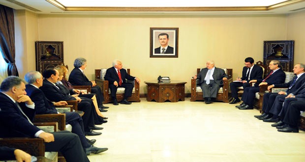 المعلم أكد خلال استقباله وفد الاحزاب والفعاليات التركية برئاسة رئيس “حزب وطن” دوغو بيرنتشيك: “ان العلاقة بين الشعبين التركي والسوري عميقة”، داعيا الوفد الى “الدفاع عن مسؤولية صيانة الروابط والمصالح العميقة بين الشعبين الصديقين بما يسهم في ارساء السلم والامن في المنطقة والعالم”، محذرا من “خطر الارهاب التكفيري الذي يحدق بالجميع ويهدد استقرار ومستقبل المنطقة”.