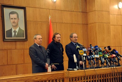 وأكد نائب وزير الخارجية والمغتربين الدكتور فيصل المقداد احترام سورية لحق الصحفيين في الوصول إلى المعلومة واستعداد الحكومة السورية للتجاوب مع أولئك الذين يريدون أن يدخلوا سورية بطريقة مشروعة.