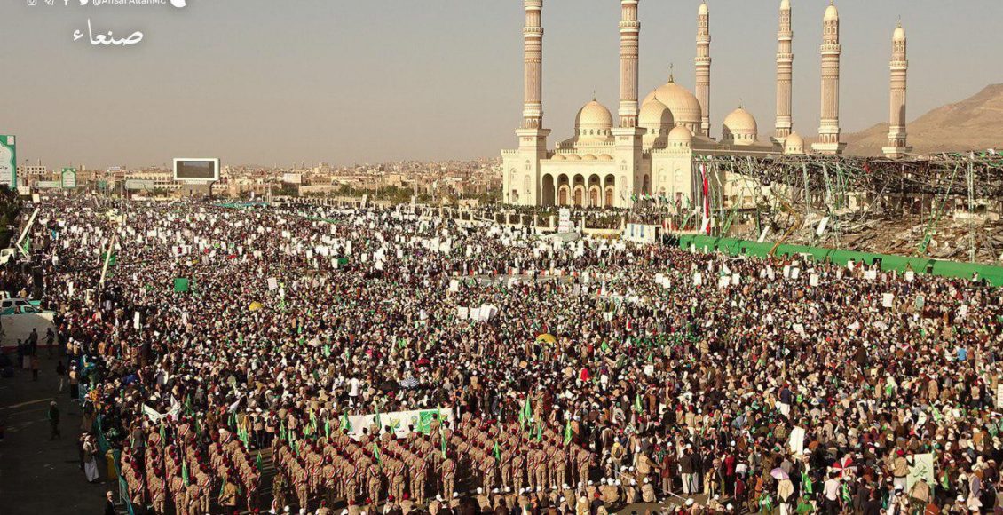 الحشود المؤمنة المحتفية بميلاد خير البشرية خرجت وكُلُّها حُبٌّ وولاءٌ لرسول الله وعَلَمِ الزمانِ مُجَدِّدِ الدين ومحيي السنن ومميت البدع، السيد القائد عبدالملك بدر الدين الحوثي.