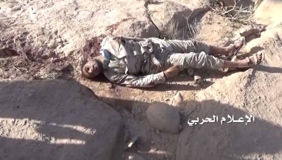 وفي المشاهد تظهر جثث بعض قتلى المرتزقة وقد تُركت في ساحات المواجهة بعد تصدّي أبطال الجيش واللجان لزحوفهم صوب جبل البحرة في منطقة النجر بصرواح.
