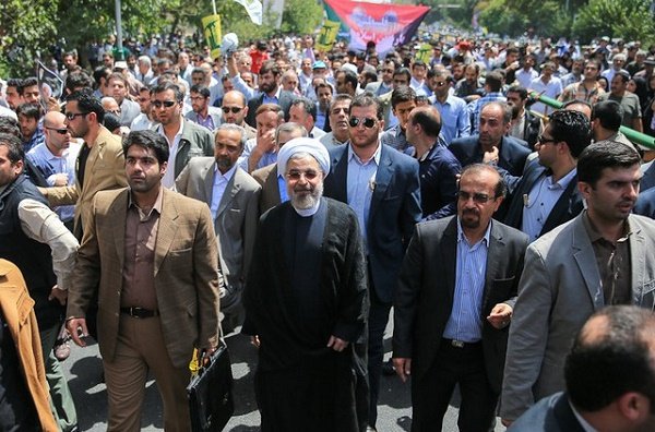 وشارك في هذه المسيرات كبار المسؤولين من بينهم رئيس الجمهورية حسن روحاني ورئيس مجلس الشورى الاسلامي علي لاريجاني وامين المجلس الاعلى للامن القومي علي شمخاني ونائب رئيس مجلس خبراء القيادة آية الله موحدي كرماني وامام جمعة طهران المؤقت آية الله سيد احمد خاتمي وقائد الحرس الثوري اللواء محمد علي جعفری والنائب الاول لرئيس الجمهورية اسحاق جهانغيري والرئيس السابق محمود احمدي نجاد وامين مجمع تشخيص مصلحة النظام محسن رضائي وعمدة طهران محمد باقر قاليباف.